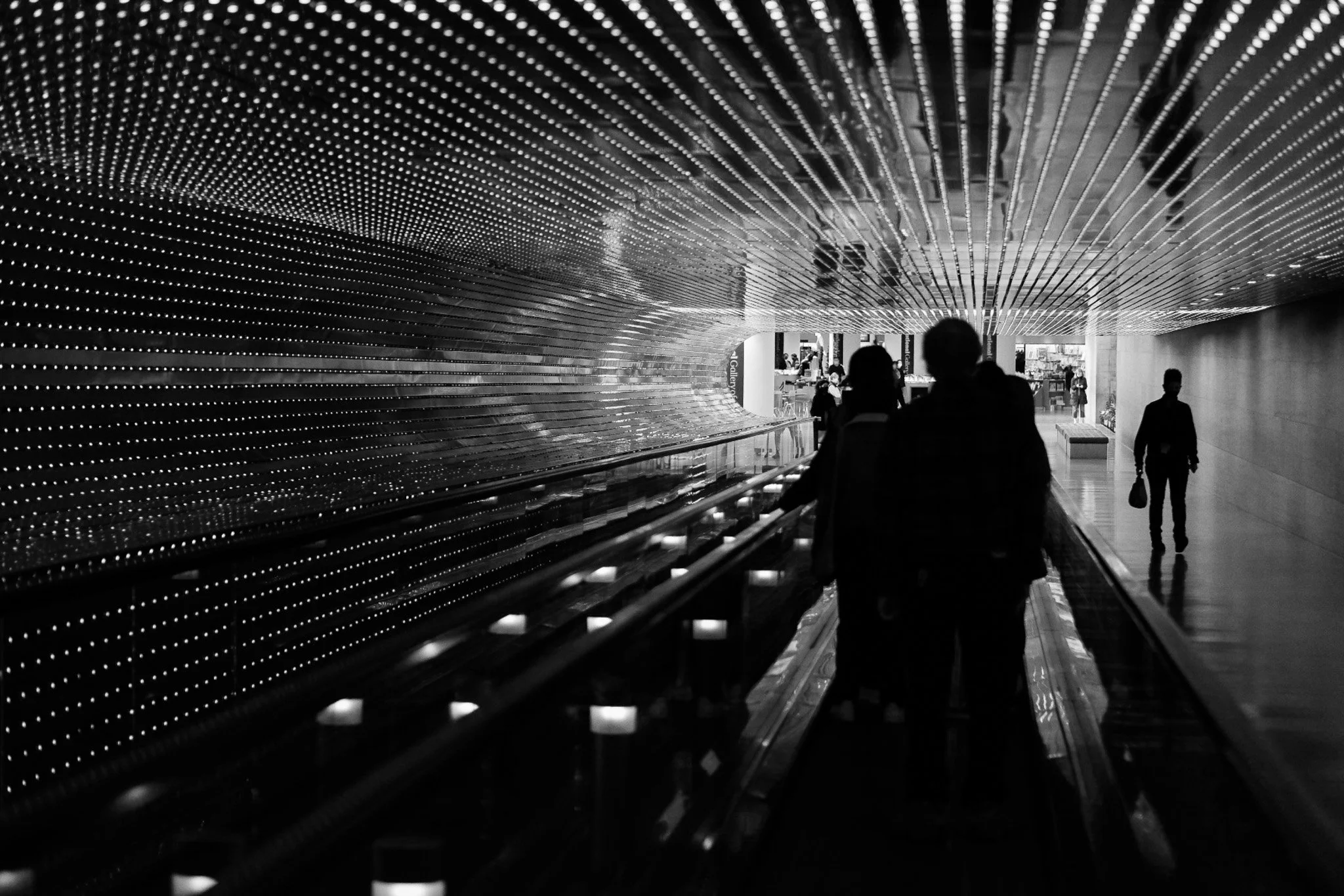The "Multiverse" light tunnel (the moving walkway between the East and West buildings) is a DC photography staple.