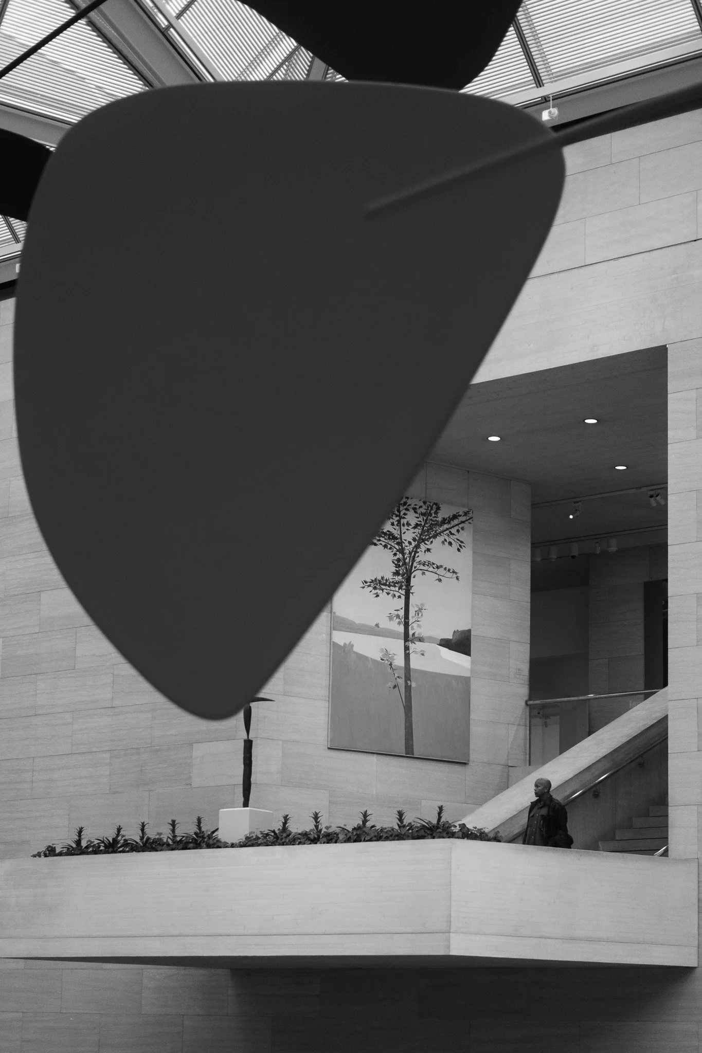 The Shot: Look for subjects interacting with the massive Alexander Calder mobile. The contrast between the organic, moving shapes of the art and the rigid, triangular skylights provides a stunning backdrop for human subjects.